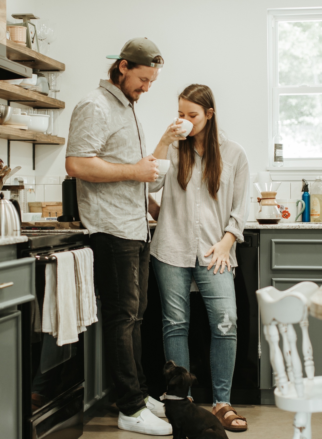Two young people creating a cozy home full of love, coffee brewing, minimal yet cozy decor, Vance Joy playing in the background, little puppy paws running around, and soon two little feet will be as well. Beautiful, young love. The kind of love that is visible to the human eye, the kind of love that everyone around the two long to find one day. The kind of love that only soul mates could have.